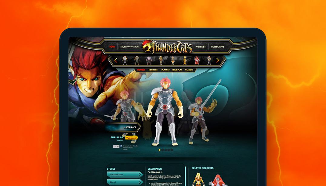 The Thundercats website astounded the passionate fans and client alike. With the revamp, Bandai was able to drive more traffic and more sales. Visitors were ecstatic about the wallpaper generator and shared their experiences via social media. The Thundercats website was a smash hit!