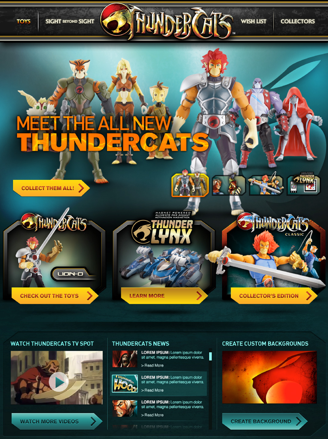 Haven Agency constructed a one-of-a-kind site for dedicated fans around the nation to view the latest Thundercats toy sets, browse the extensive toy catalog, download exclusive media, watch videos, read the latest news, and engage in a custom wallpaper generator.