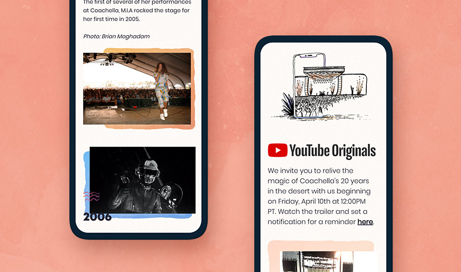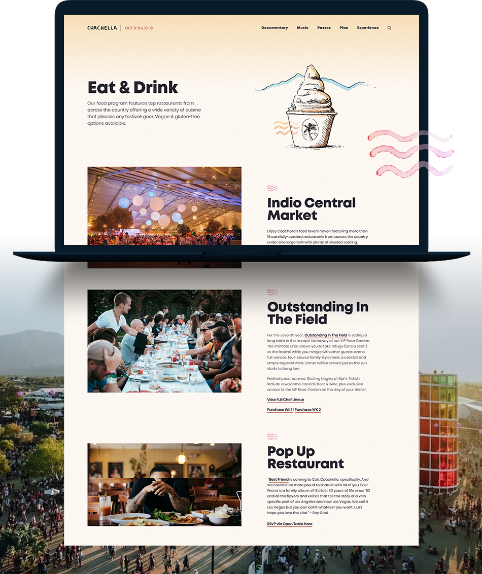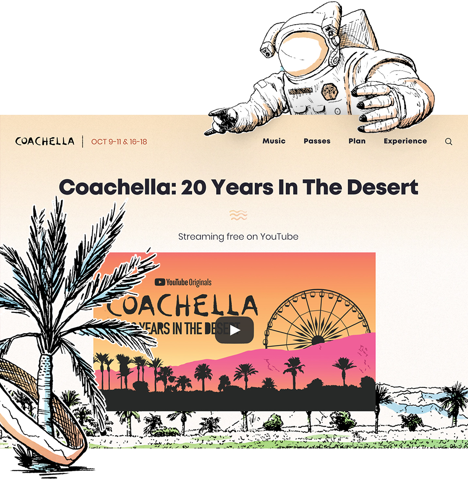 In 2020, Haven Agency had the privilege of collaborating with Coachella to design and develop their dynamic website. Our team worked closely with Coachella to create an engaging and user-friendly experience that reflects the festival’s iconic brand and vibrant culture. From intuitive navigation to visually stunning design, the website serves as a hub for fans, showcasing event details, artist lineups, and interactive features.