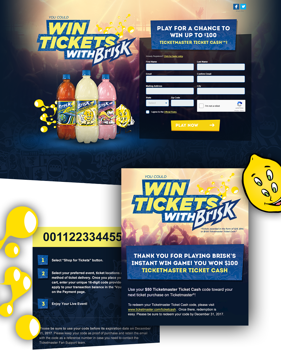 Haven partnered with Brisk and Live Nation to create an engaging Enter to Win campaign, offering fans the chance to win exclusive concert tickets and Brisk products. The campaign featured a digital platform where participants could easily enter the sweepstakes and engage with Brisk's bold brand. Haven developed a seamless and interactive experience, enhancing fan engagement while tying the campaign to Live Nation’s live music events.