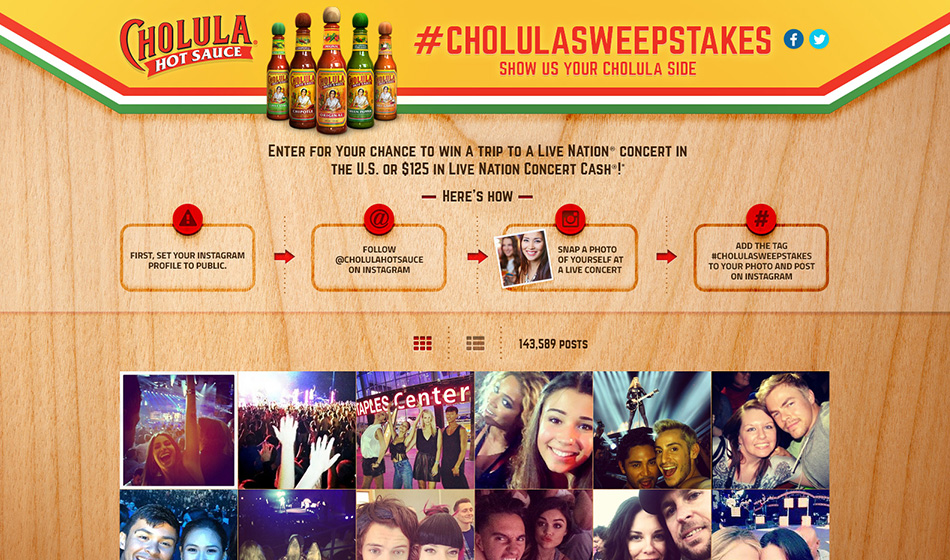 Haven partnered with Cholula and Live Nation to create an exciting sweepstakes campaign, offering fans the chance to win concert tickets and Cholula products. The campaign featured a digital platform where users could easily enter for a chance to win, while engaging with the bold flavors of Cholula.