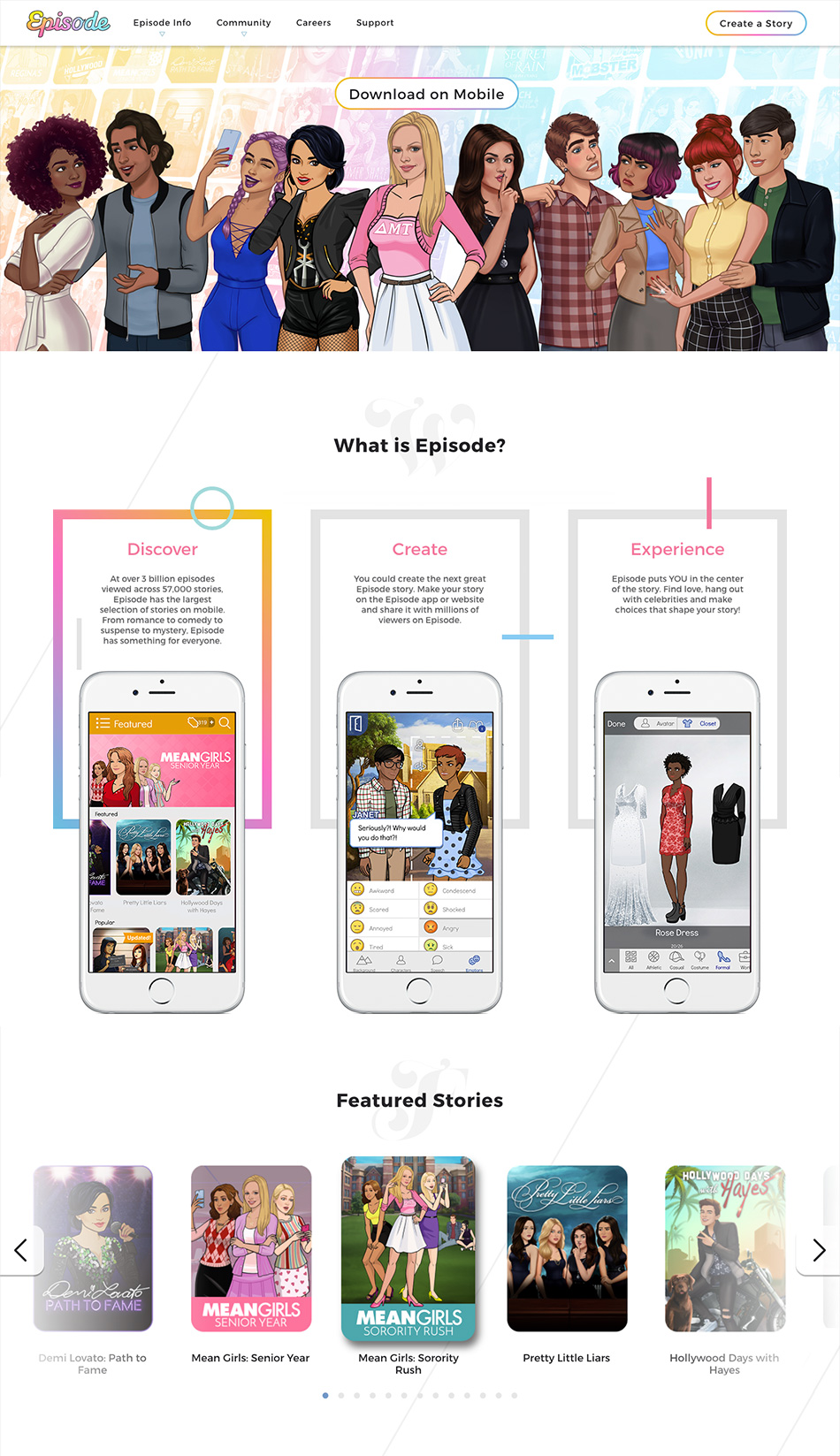 Episode is a mobile storytelling network and platform that features interactive Hollywood-caliber stories built from the ground up for mobile.