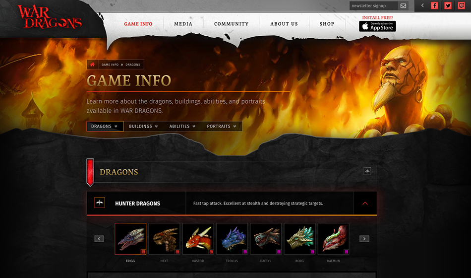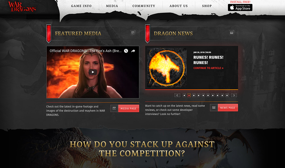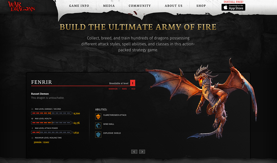 The War Dragons website was designed to highlight the game’s unique features, including its strategic gameplay, dragon customization, and dynamic battle mechanics. Our goal was to create an immersive experience for visitors that would draw them into the world of War Dragons and encourage them to download and play the game.