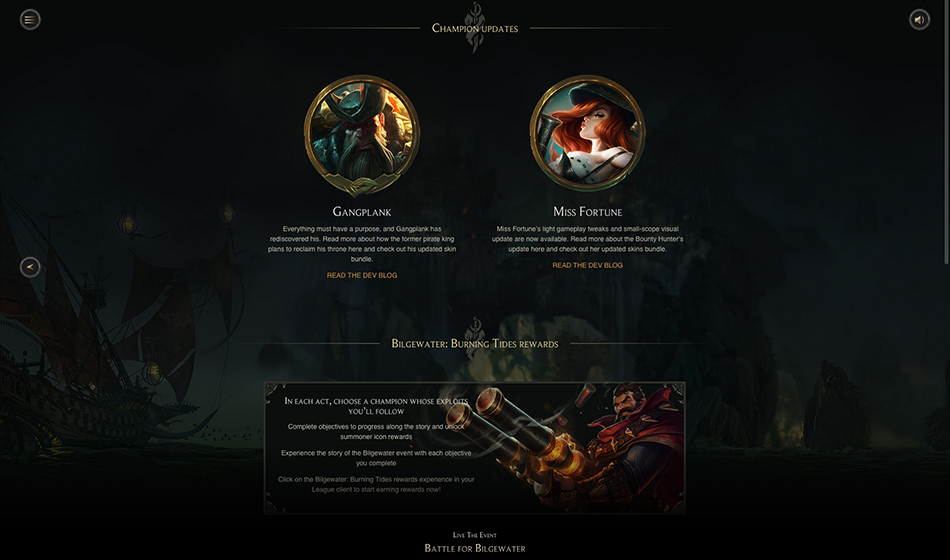 Haven partnered with Riot Games to design and develop the website for Bilgewater: Burning Tides, an exciting chapter in the League of Legends universe. The project focused on creating an immersive digital experience that brought the Bilgewater story to life, engaging fans with interactive content, lore, and visuals. Haven crafted a seamless, dynamic platform that allowed players to explore the world of Bilgewater while deepening their connection to the game’s narrative and characters.