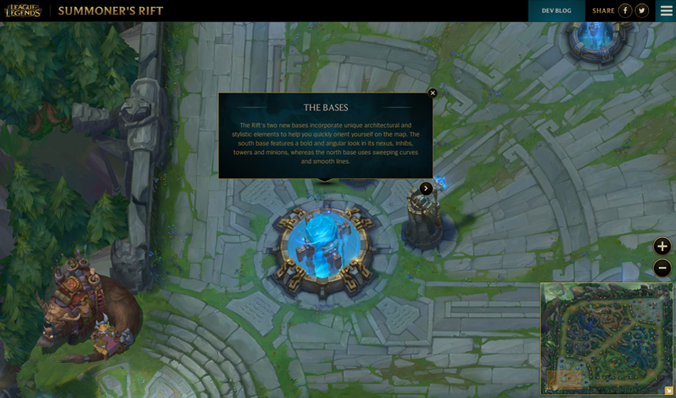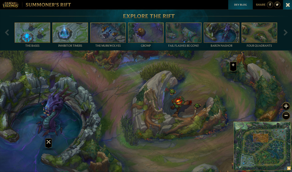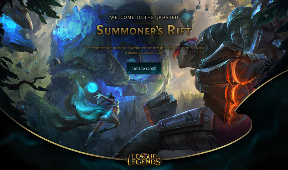 The Summoner’s Rift Update Reveal website was created to provide players and fans with all the essential information about the upcoming map update. It acted as an exciting teaser for the changes, presenting them in a visually compelling and easy-to-navigate format that built anticipation for the update release.